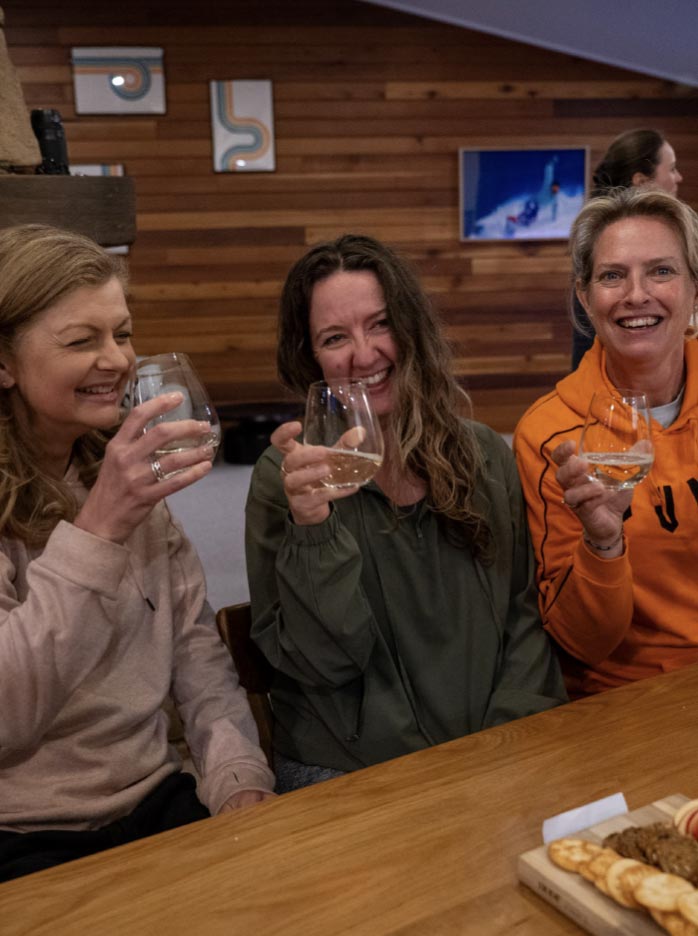 One day back in May I was casually scrolling my phone and K7‘s Alpine Women’s 3 day Retreat popped up, without hesitation I signed up, being drawn to the idea of yoga, sauna and a supportive trip skiing into the back country. Lately I have grown a bit tired of the chaos that exists skiing in the resorts and so backcountry skiing was something I’d been thinking about. The follow up information and communication was outstanding and included a fitness plan. The first day not even a blizzard could stop us as we headed to the protection of the trees, we got many tips on skiing in these conditions and terrain on the way up. Drinking cacao with a cool bunch of women beside giant rocks in wild weather after climbing up Dead Horse Gap was so so cool!. The ski down in the fluffiest snow I’ve ever been in, amongst the snow gums, getting tips and fun chats along the way by our expert guides Chess and Lew, including being helped up after sinking into the glorious fluffy snow and cheered on by these incredible people will just stick with me for a long time. The K7 ski guides Chess, Lew and content creator Divya communicated and checked in, made sure we were warm, and carried extra gear in case of need. Logistics queen Leah made sure everything else back at the lodge was perfect. The retreat catered to the group’s different interests and experience, offering snowshoeing, hardcore ski touring and for those like me who on a healing journey just wanted to ski and be. Thank you K7 crew it really was the most excellent adventure! back completely pooped, sit down, get fed, and be ready to go again. It felt like a mountain family. Like being invited into someone's family."