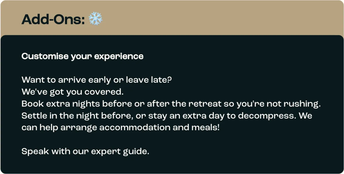 You'll meet us in Thredbo, with clear travel details provided before the retreat.